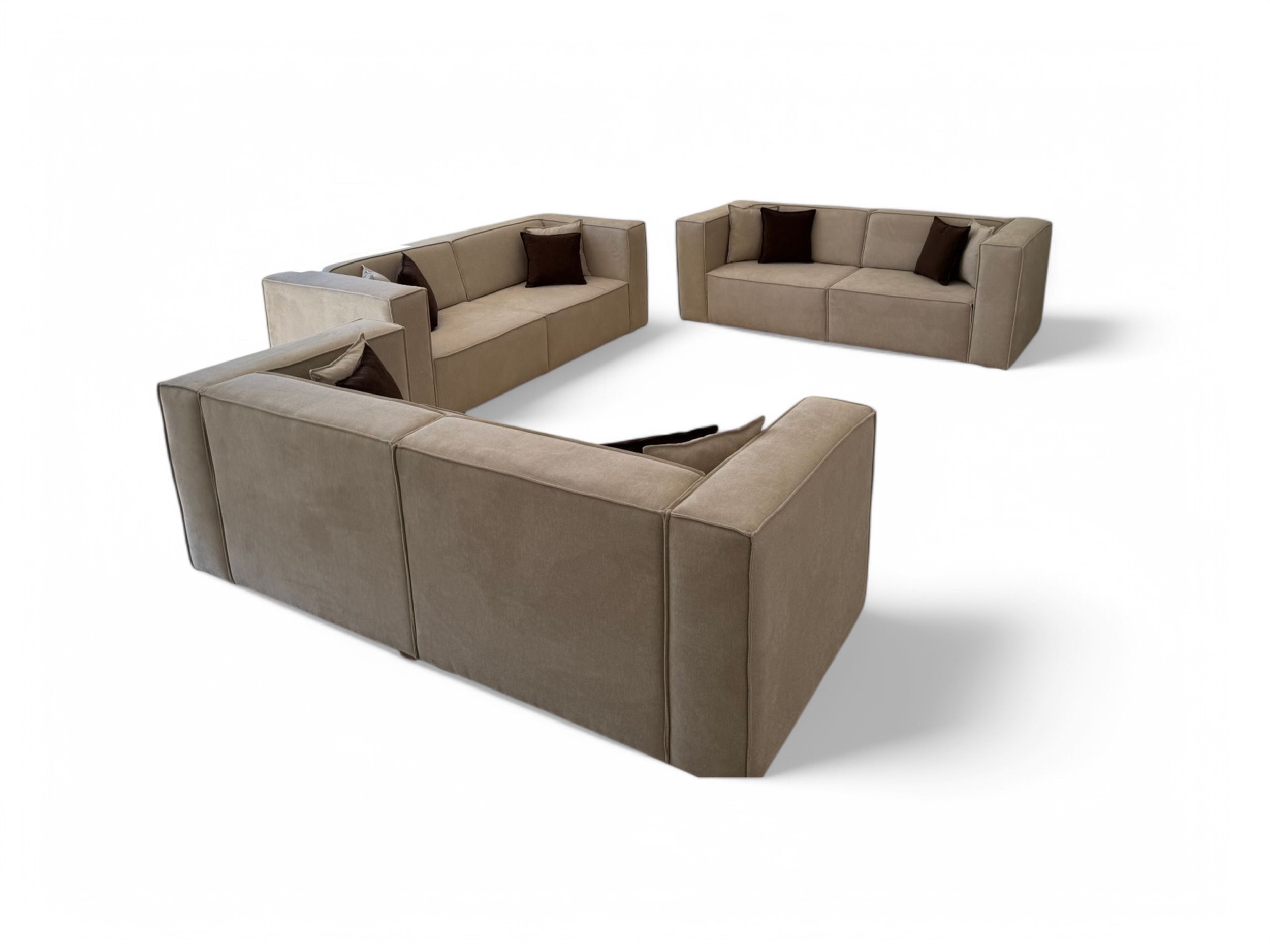 Dank seines modularen Aufbaus kann das Modena Sofa individuell zusammengestellt werden, um sich perfekt an verschiedene Wohnräume anzupassen. Ob als großzügige Wohnlandschaft oder kompakteres Sofa – das zeitlose Design macht es zu einem vielseitigen Highlight für jedes Zuhause.